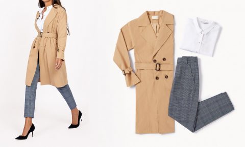 Let your more classic side out to play by pairing your trench coat with some checkered trousers and a white shirt with the right fit. Add some stilettos to look great at the office.